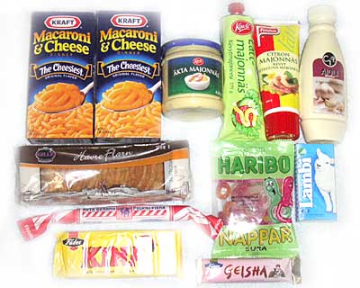 最近、カナダ、イタリア、中国・・・と自分でも不思議に思うくらい今まで全く縁が無かったインターナショナルな話題に触れている私ですが、今回はスウェーデンっす。 実はマヨ絡みのきっかけでスウェーデンに住む日本人の方とメル友になったのだ。 そのお友達に、スウェーデンのマヨが欲しいって頼んでたら、そろそろ仲良くなってきたからって事で、送ってきてくれたー☆ マヨの他に、お菓子やらも同封してくれて、夢のスウェーデンセットが本日自宅に到着!