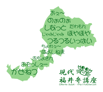 代表的な福井弁を集めたデザイン。思わず声に出して言ってみたくなる魔力を秘める。