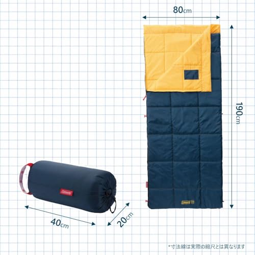 右の緑のコールマンが封筒型で、布団で寝るなら封筒型が広くて快適。